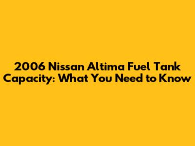 Q: What is the fuel tank capacity of the 2006 Nissan Altima? A: The 2006 Nissan Altima has a fuel tank capacity of approximately 20 gallons (76 liters).