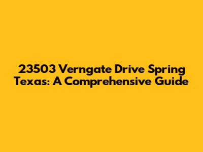 Welcome, guys! Today, weāre diving deep into everything you need to know about 23503 Verngate Drive, Spring, Texas. Whether you're considering moving here, already a resident, or just curious about this vibrant community, this guide has got you covered. Weāll explore the neighborhood's highlights, local amenities, real estate insights, and all the little details that make this place special. So, letās jump right in!