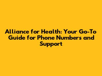 Alliance For Health: Contact Numbers & Support Guide
