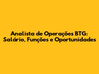 Analista De Operações BTG: Salário, Funções E Oportunidades