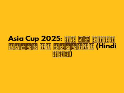 Asia Cup 2025: Latest News & Updates In Hindi
