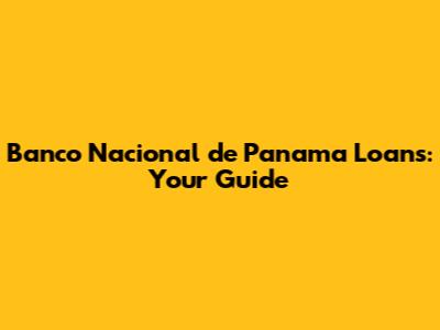 Banco Nacional De Panama Loans: Your Guide