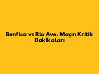 Benfica Vs Rio Ave: Maçın Kritik Dakikaları