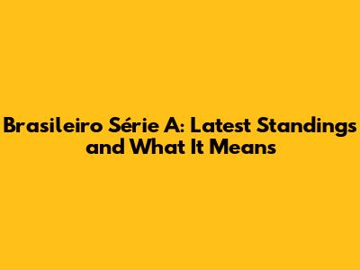 Brasileiro Série A: Latest Standings And What It Means