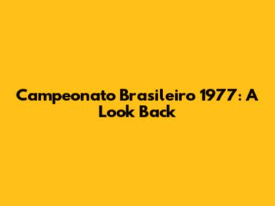 Campeonato Brasileiro 1977: A Look Back