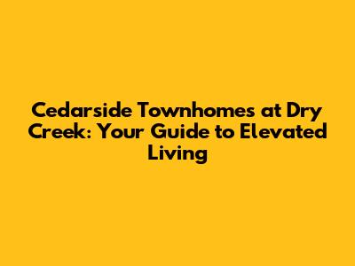 Hey guys! Are you on the hunt for a place that combines the tranquility of nature with the convenience of city life? Well, let me introduce you to Cedarside Townhomes at Dry Creek. Nestled in a prime location, these townhomes offer a unique blend of comfort, style, and accessibility. In this article, we're diving deep into what makes Cedarside Townhomes a fantastic place to call home.