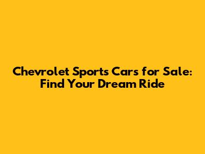 Chevrolet Sports Cars For Sale: Find Your Dream Ride