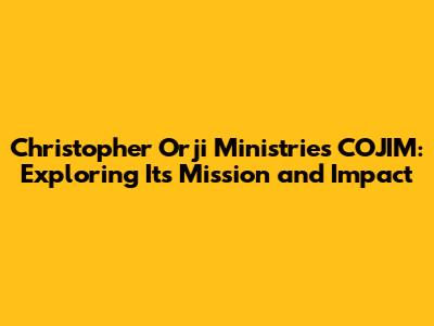 Christopher Orji Ministries: Exploring COJIM's Mission