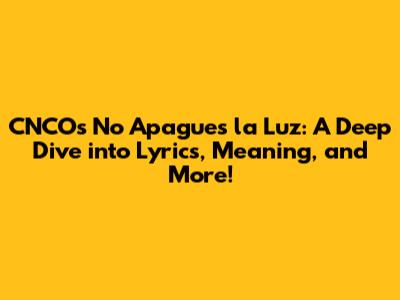 Hey music lovers! Ever gotten a song stuck in your head and just had to know everything about it? Well, today, we're diving deep into CNCO's hit single, "No Apagues la Luz" – or, for those of you who aren't fluent in Spanish, "Don't Turn Off the Light." This song is a total banger, and we're gonna break down the lyrics, the meaning behind them, and maybe even uncover a few fun facts along the way. Get ready to sing along, because you're about to become an expert on all things "No Apagues la Luz"! Let's get started, shall we?
