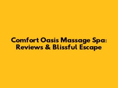 Comfort Oasis Massage Spa: Reviews & Blissful Escape