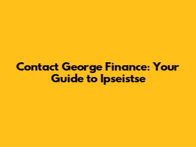 Contact George Finance: Your Guide To Ipseistse