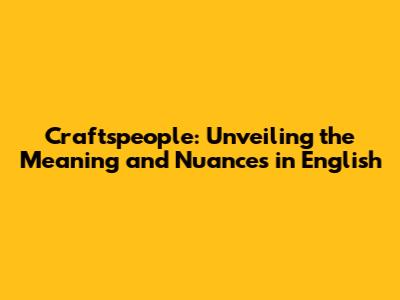 Craftspeople: Definition And Usage Explained