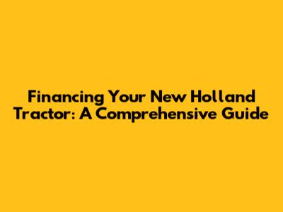 Financing Your New Holland Tractor: A Comprehensive Guide