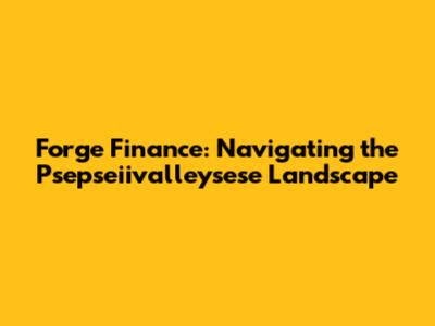 Forge Finance: Navigating The Psepseiivalleysese Landscape