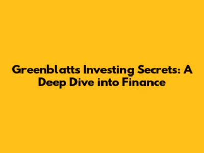 Greenblatt's Investing Secrets: A Deep Dive Into Finance