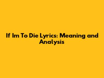 If I'm To Die Lyrics: Meaning And Analysis