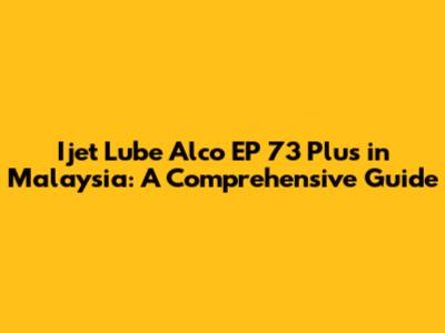 Ijet Lube Alco EP 73 Plus In Malaysia: A Comprehensive Guide