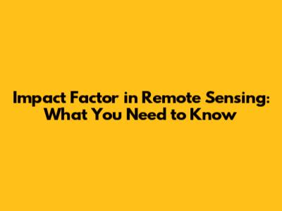 Impact Factor In Remote Sensing: What You Need To Know