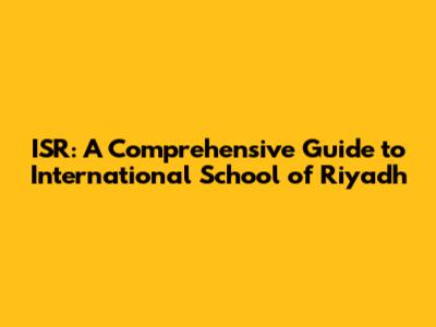 ISR: A Comprehensive Guide To International School Of Riyadh