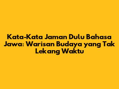Kata-Kata Jaman Dulu Bahasa Jawa: Warisan Budaya Yang Tak Lekang Waktu