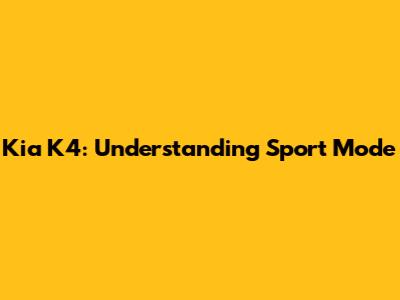 How Does Sport Mode Work in the Kia K4?