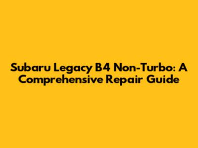 Legacy B4 Non-Turbo: A Comprehensive Repair Guide