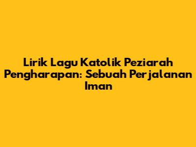 Lagu Katolik Peziarah Pengharapan adalah salah satu lagu rohani yang sangat populer di kalangan umat Katolik di Indonesia. Lagu ini sarat akan makna dan mengajak pendengarnya untuk merenungkan perjalanan hidup sebagai seorang peziarah di dunia ini, yang selalu memiliki pengharapan akan kehidupan kekal di surga. Bagi kalian yang seringkali merasa kesulitan dalam menghadapi berbagai masalah, lagu ini bisa jadi teman yang pas untuk menemani perjalanan kalian.
