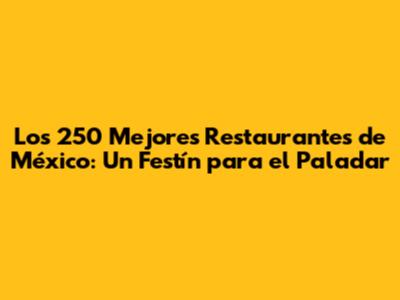 ¡Hola, amantes de la gastronomía! ¿Están listos para embarcarse en un viaje culinario que despertará sus sentidos y los transportará a los rincones más deliciosos de México? Prepárense, porque hoy les traigo una guía explosiva: Los 250 Mejores Restaurantes de México. Sí, leyeron bien, ¡250! Hemos recorrido el país, desde las vibrantes calles de la Ciudad de México hasta los paraísos costeros de la Riviera Maya, para seleccionar lo mejor de lo mejor. Prepárense para descubrir lugares increíbles, platillos que los dejarán boquiabiertos y experiencias gastronómicas que atesorarán para siempre.