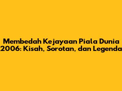 Membedah Kejayaan Piala Dunia 2006: Kisah, Sorotan, Dan Legenda