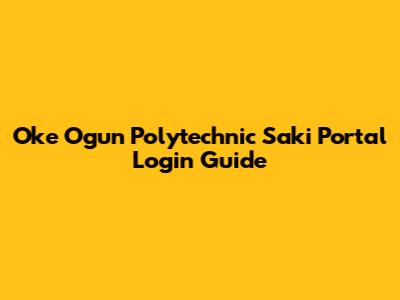 Oke Ogun Polytechnic Saki Portal Login Guide