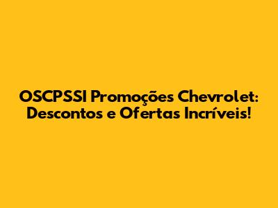 OSCPSSI Promoções Chevrolet: Descontos E Ofertas Imperdíveis!