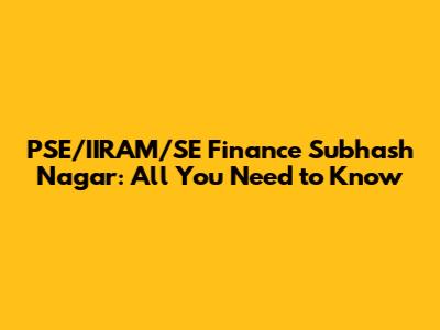 PSE/IIRAM/SE Finance Subhash Nagar: All You Need To Know