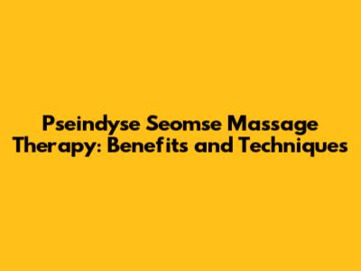 Hey guys! Ever heard of Pseindyse Seomse massage therapy? It's a bit of a mouthful, I know, but trust me, it's worth exploring. This unique massage style is gaining popularity for its amazing health benefits and distinctive techniques. In this article, we're diving deep into the world of Pseindyse Seomse massage therapy. We'll break down what it is, how it works, and why you might want to give it a try. So, let’s get started!