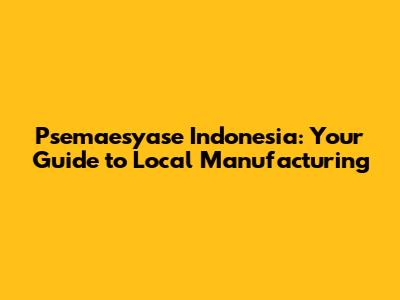 Psemaesyase Indonesia: Your Guide To Local Manufacturing