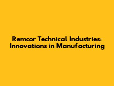 Remcor Technical Industries: Innovations In Manufacturing