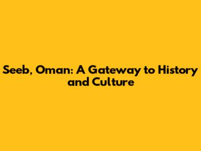 Seeb, Oman: A Gateway To History And Culture