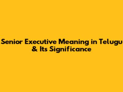 Senior Executive Roles: Telugu Meaning & Career Path