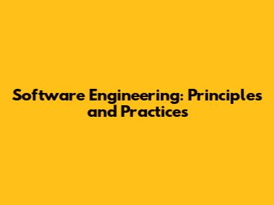 Software Engineering: Principles And Practices