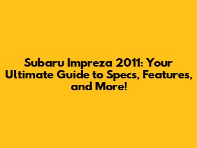 Subaru Impreza 2011: Specs, Features & More!