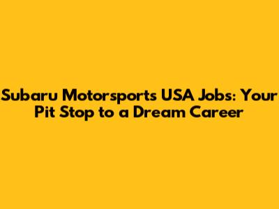 Subaru Motorsports USA Jobs: Your Pit Stop To A Dream Career
