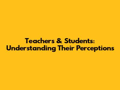 Teachers & Students: Understanding Their Perceptions