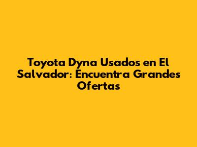 Finding a used Toyota Dyna in El Salvador can be a rewarding experience. With careful research, inspection, and negotiation, you can find a reliable and affordable vehicle to meet your needs. Whether you're a business owner or an individual looking for a dependable work truck, the Toyota Dyna is an excellent choice. Happy hunting!