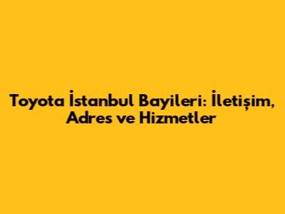 Toyota İstanbul Bayileri: İletişim, Adres Ve Hizmetler