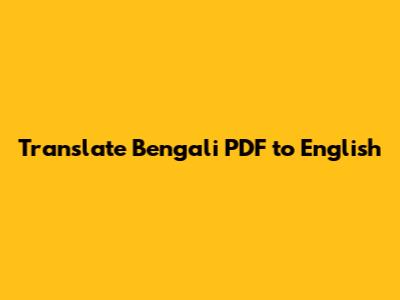 Translate Bengali PDF To English