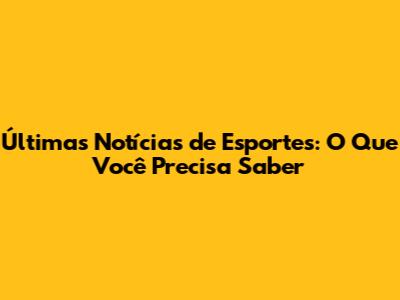 Últimas Notícias De Esportes: O Que Você Precisa Saber