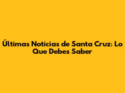 Últimas Noticias De Santa Cruz: Lo Que Debes Saber