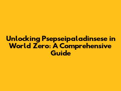 Unlocking Psepseipaladinsese In World Zero: A Comprehensive Guide