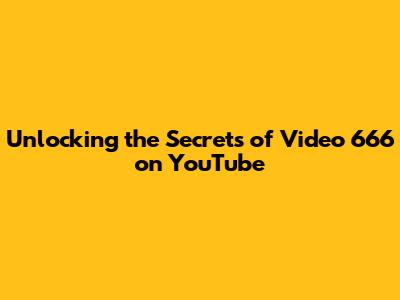 Unlocking The Secrets Of Video 666 On YouTube