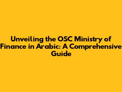Unveiling The OSC Ministry Of Finance In Arabic: A Comprehensive Guide