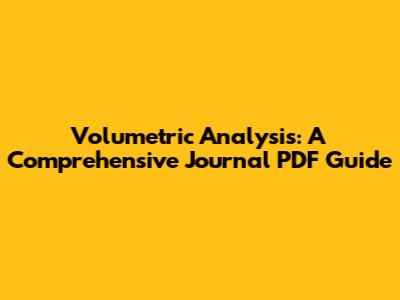 Volumetric Analysis: A Comprehensive Journal PDF Guide